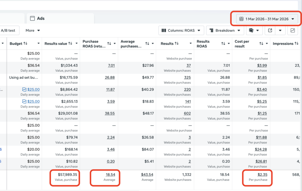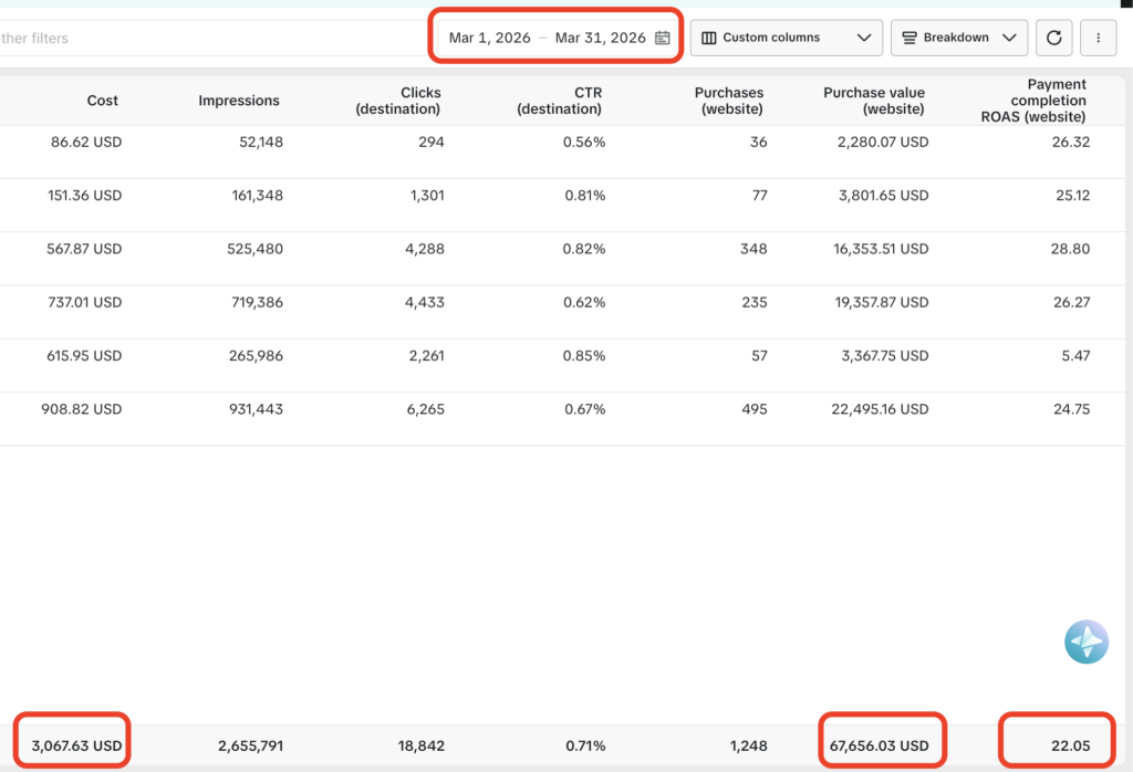 Return on Ad Spend (ROAS): Achieved exceptional rates reaching 22x and 18x on Meta platforms.
