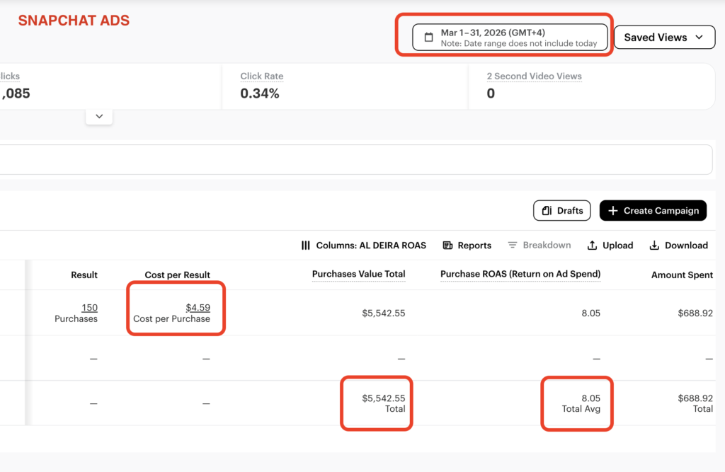 Snapchat Ads: Delivered an 8.05x return with a customer acquisition cost (CAC) perfectly optimized for the Gulf market.