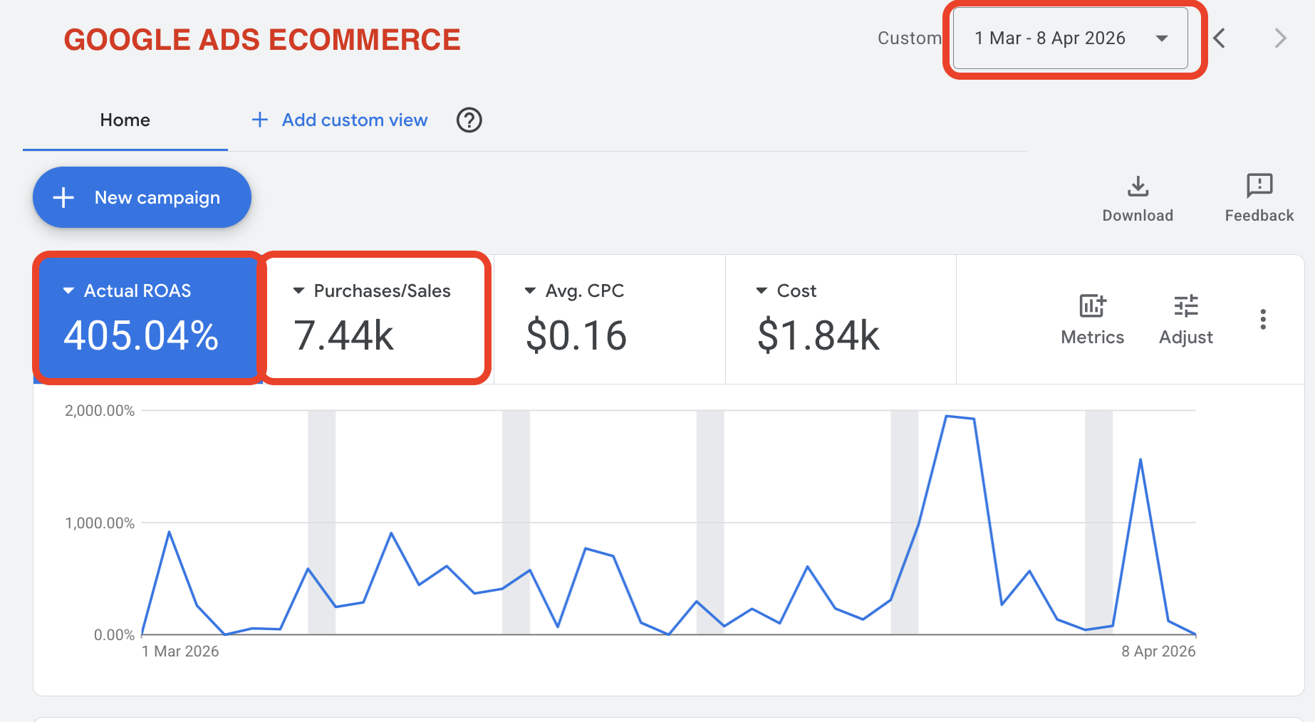 Google Ads: Successfully secured over 7,400 orders with a 405% actual ROAS.