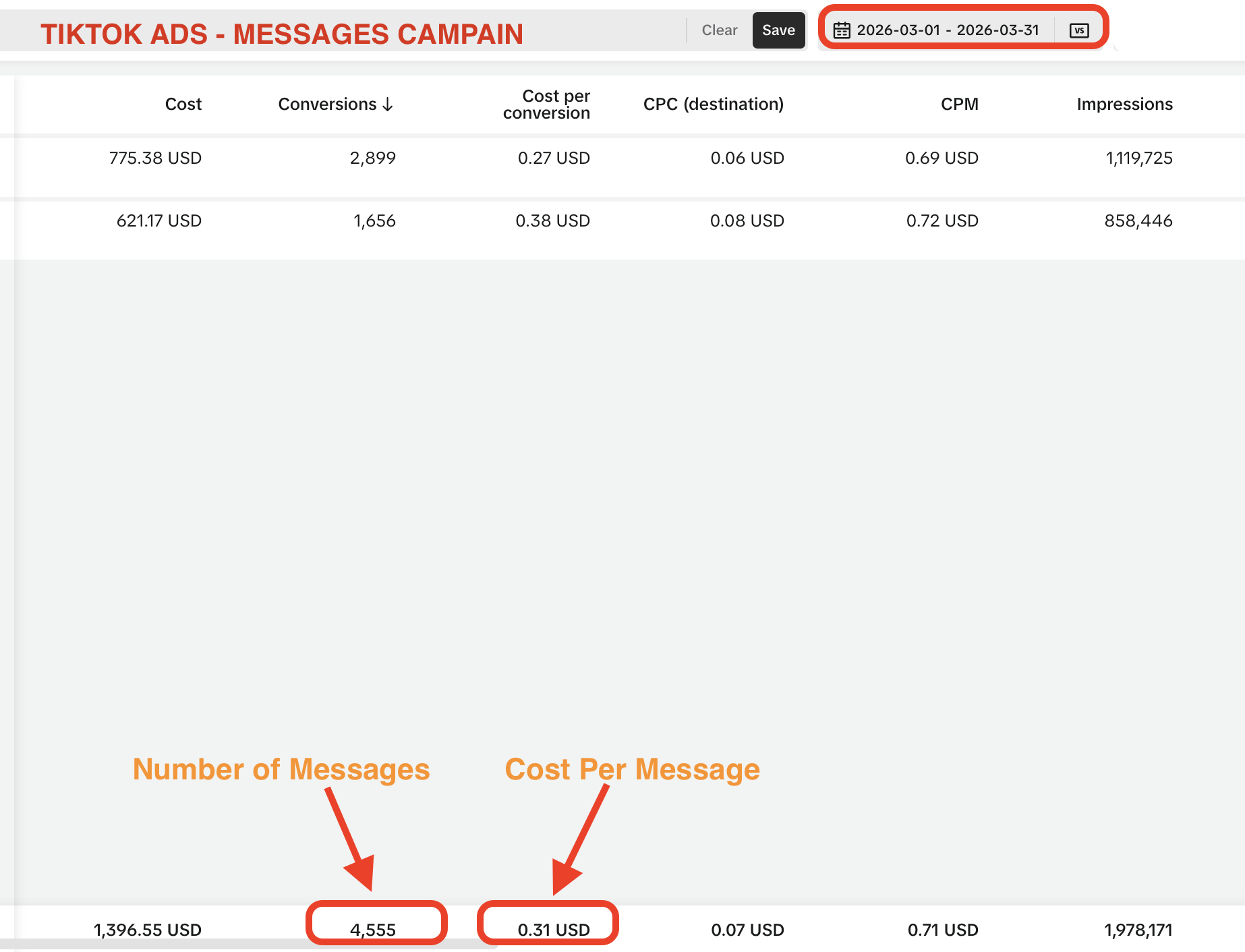 TikTok Ads: Captured over 4,500 sales inquiries at a cost of only $0.31 per message.